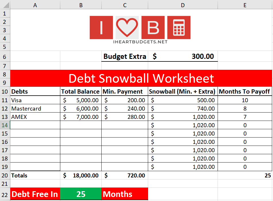 The most popular alternative to the debt snowball method is the debt avalanche, which entails paying off your debts in the order of highest interest rate to lowest interest rate (while still making the minimum. Should you pay off higher interest loans first. In order to do this, you will need a debt snowball worksheet and a debt snowball calculator. 4 how does the snowball method for paying off debts work? The debt snowball calculator is a simple spreadsheet available for microsoft excel® and google sheets that helps you come up with a plan.